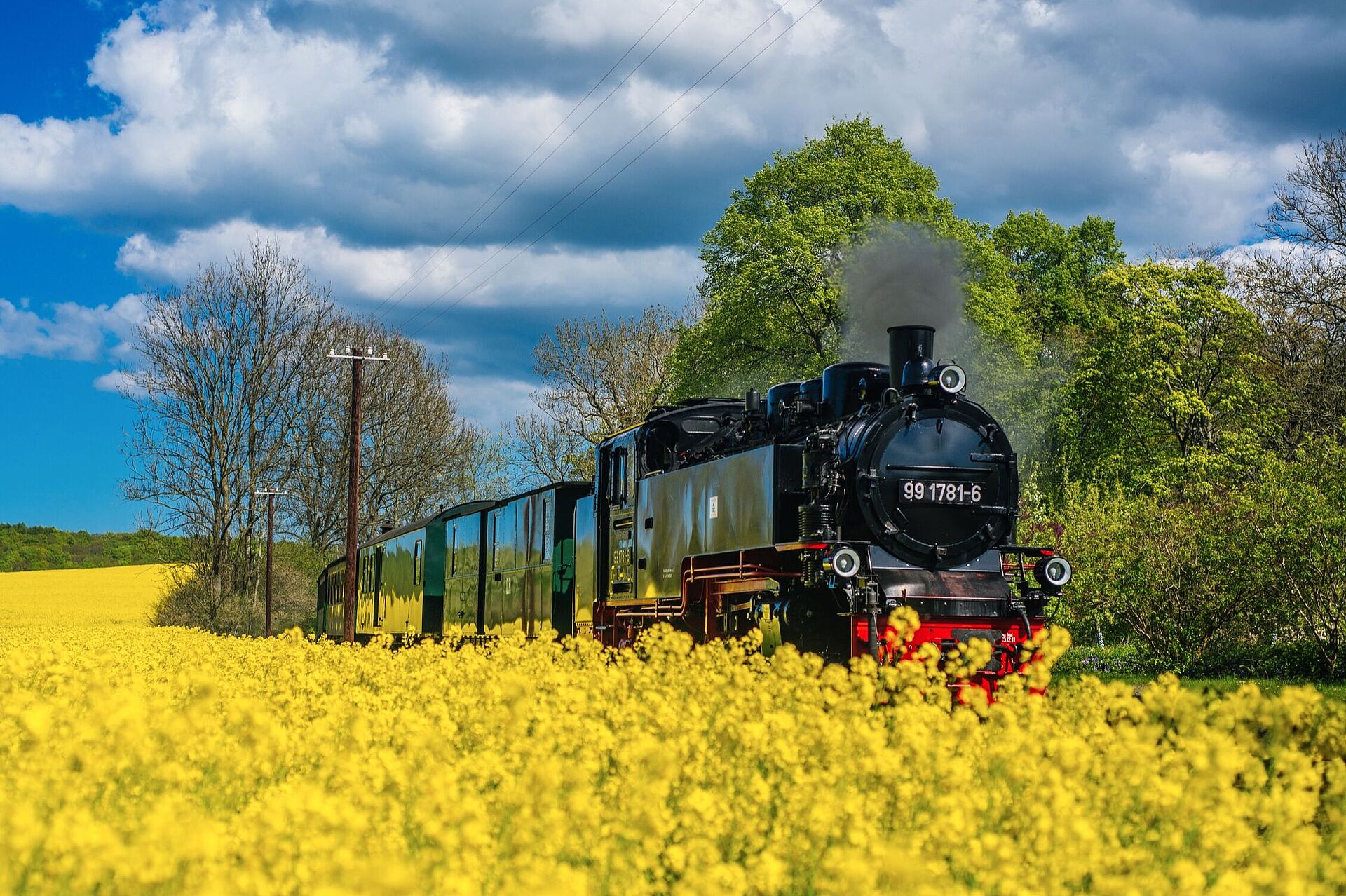 Dampflokbetriebene Schmalspurbahn - Die historische Bahn hat eine Spurweite von 750 mm und fährt mit 30 km/h Höchstgeschwindigkeit durch den landschaftlich reizvollen Südosten der Insel Rügen.